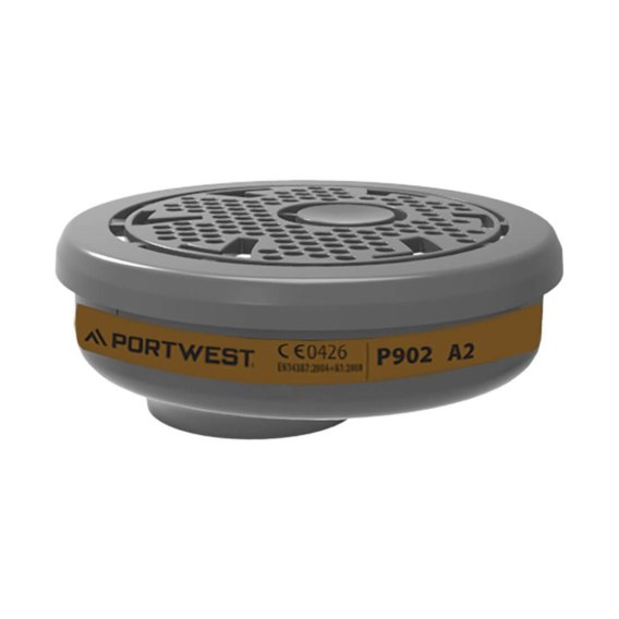 P902 jest filtrem gazowym klasy 2 typu A i chroni przed gazami i oparami organicznymi, których temperatura wrzenia jest wyższa niż 65°C. Może być również stosowany w celu ochrony przed wodorowęglanami i rozpuszczalnikami. Specjalny system bagnetowy Portwest zapewnia bezpieczniejsze połączenie między maską a filtrem, a podwójne filtry zapewniają większy komfort i równowagę. Ten filtr jest kompatybilny z maskami pełnotwarzowymi P500 i półmaskami P420, P430, P421, P431.
